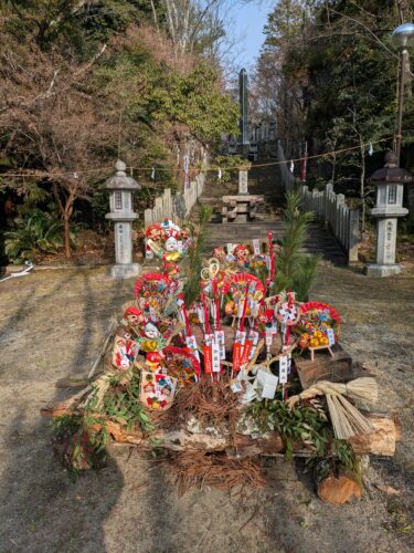 小正月の1月15日、大和本宮の鬼門を守護する鎮宅不動尊前にて、斎竹に注連縄を張り巡らせて丸太で大焚火 …続きを読む